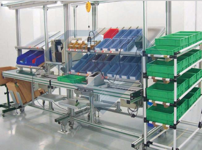 其實(shí)上面那種工作臺也是帶有輸送功能的,中間有一條輸送帶。這里講的輸送設(shè)備是專門用來輸送的,如滾筒線、皮帶線、摩擦線、網(wǎng)帶線等等。輸送設(shè)備選用工業(yè)鋁型材框架要考慮貨物的重量,根據(jù)載重選用不同厚度的工業(yè)鋁型材。