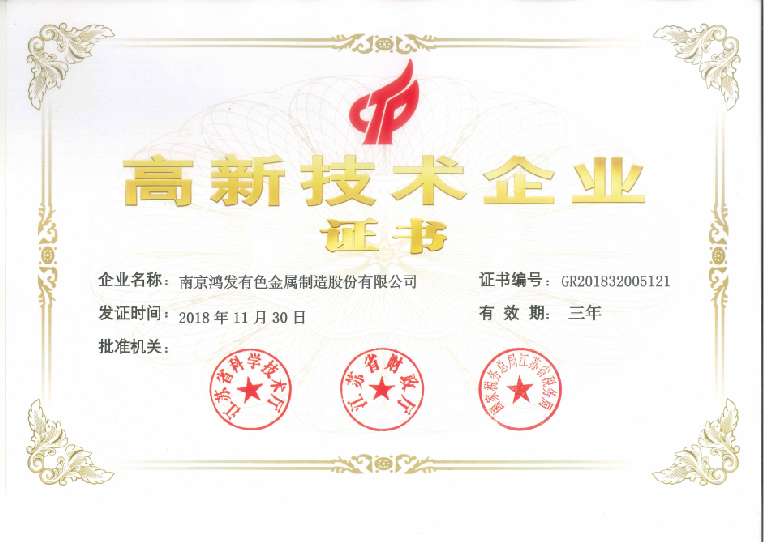 版權所有:南京鴻發(fā)有色金屬制造股份有限公司 公司地址:南京市溧水區(qū)柘塘鎮(zhèn)柘寧東路305號 備案號:蘇ICP備09034103號 百度統(tǒng)計